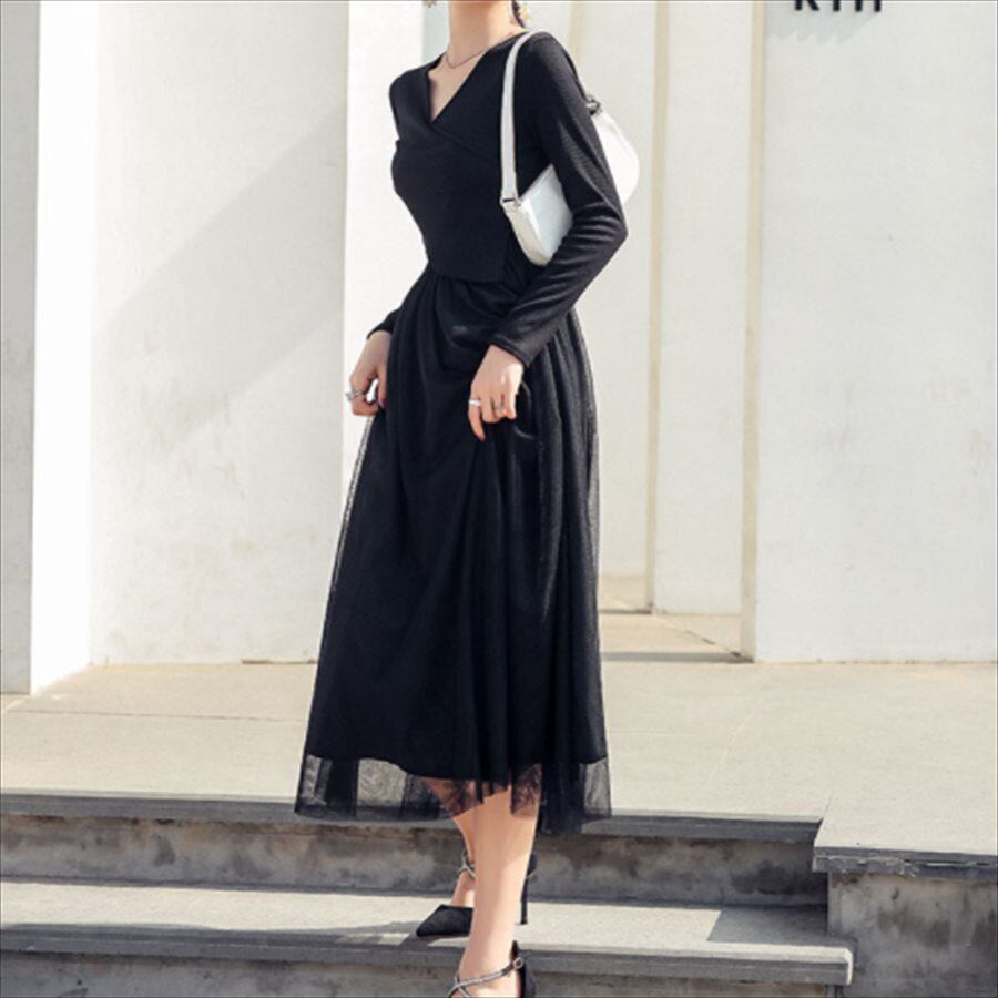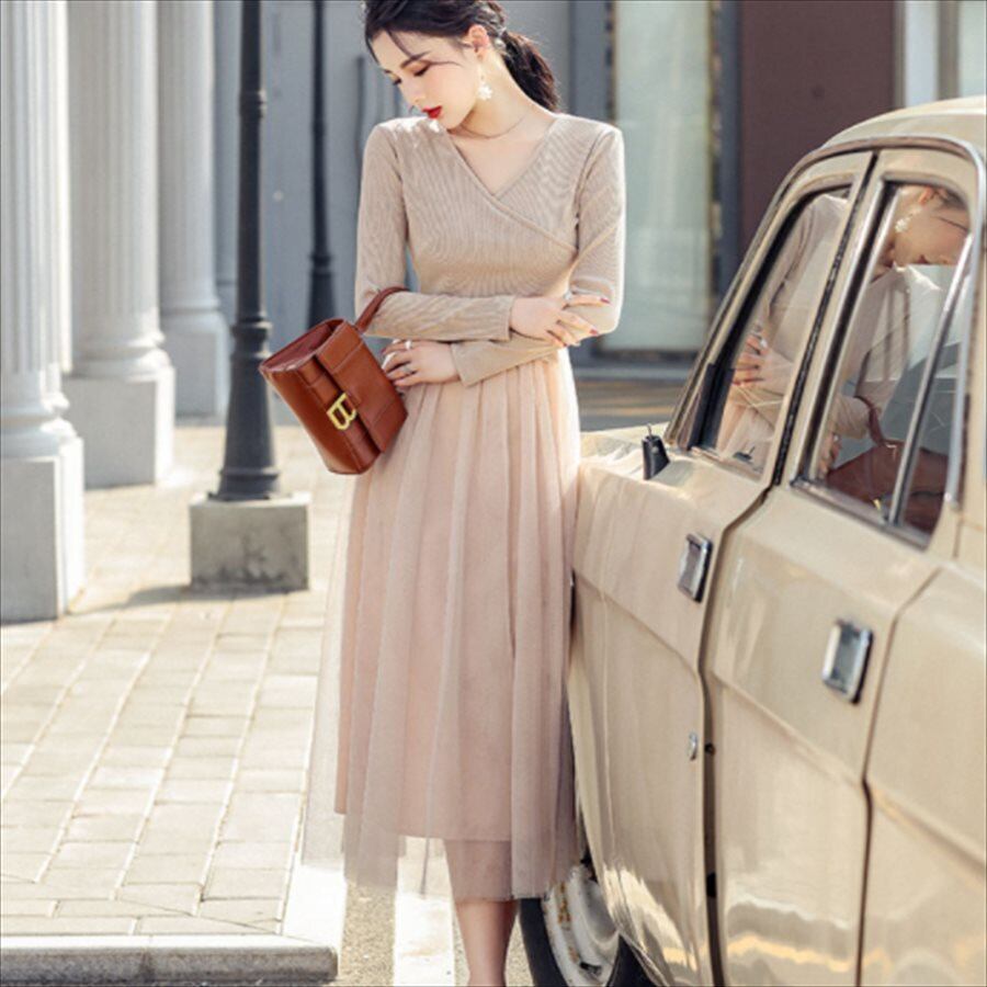 ニット生地とチュール生地のドッキング切り替えがお洒落♡