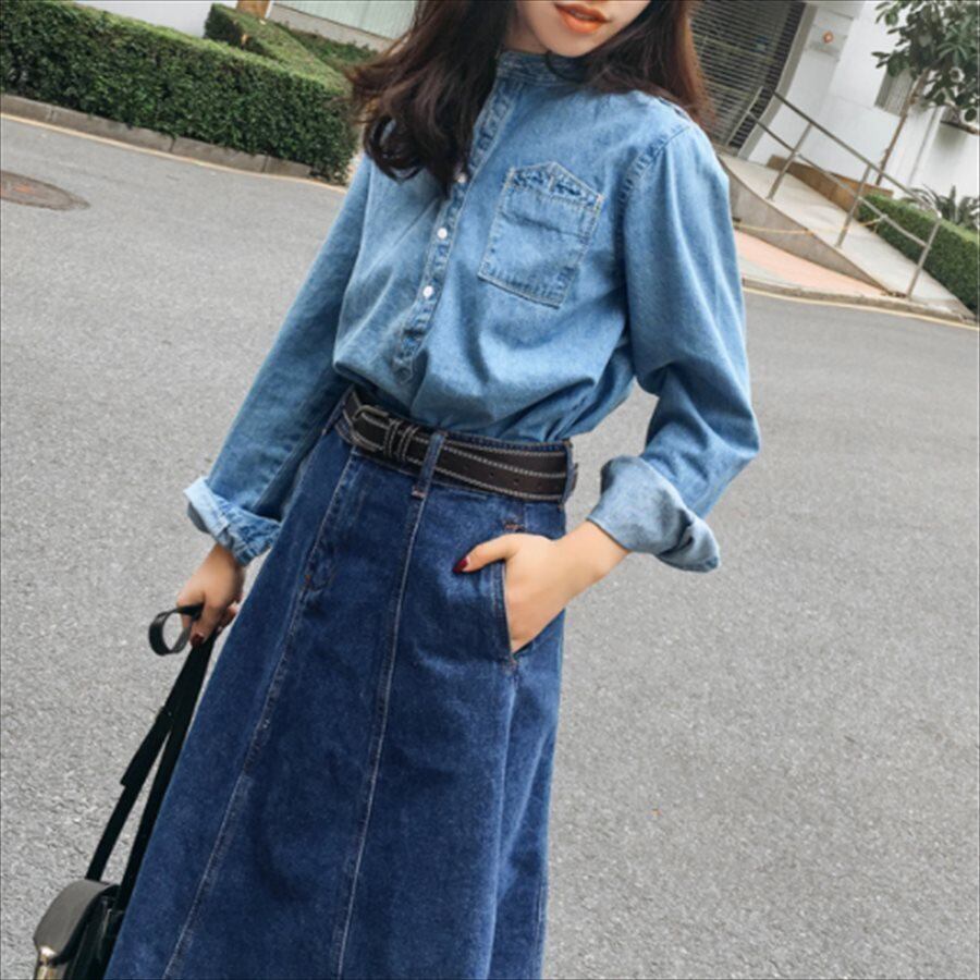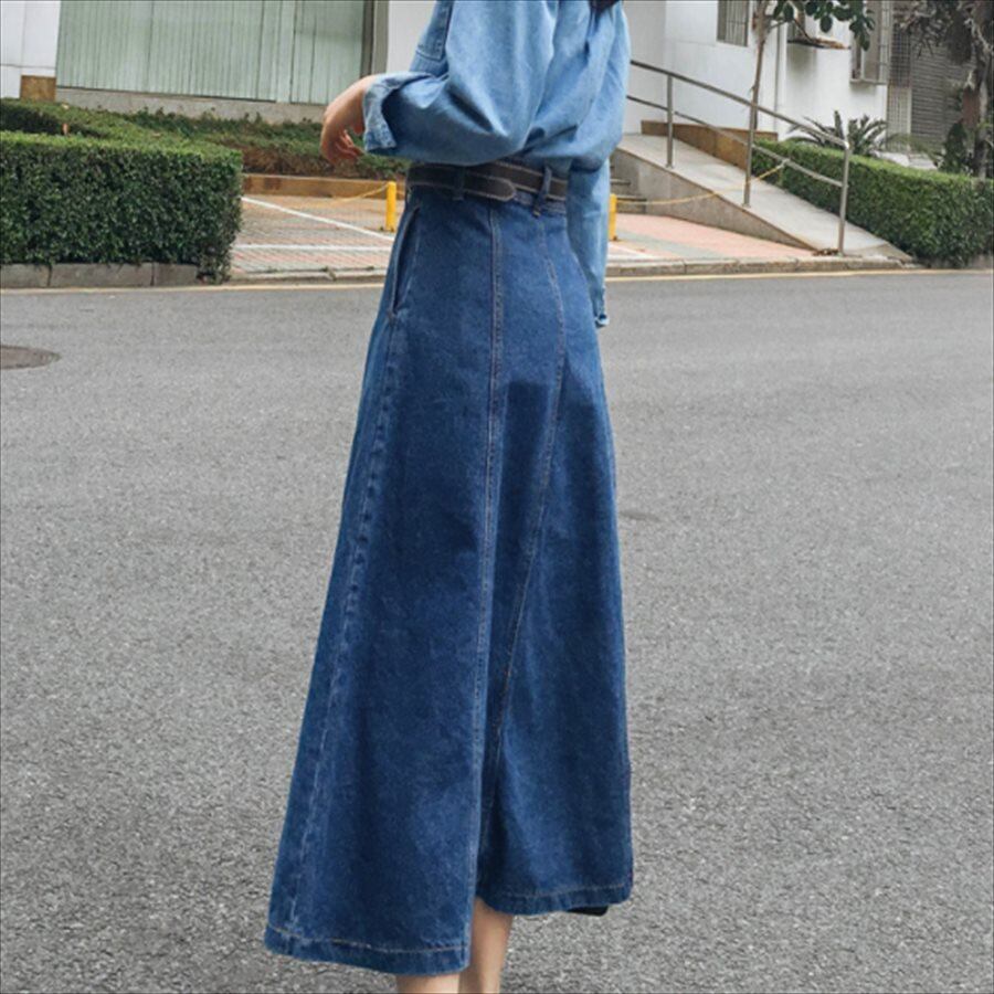 マキシ丈のデニムスカートです。