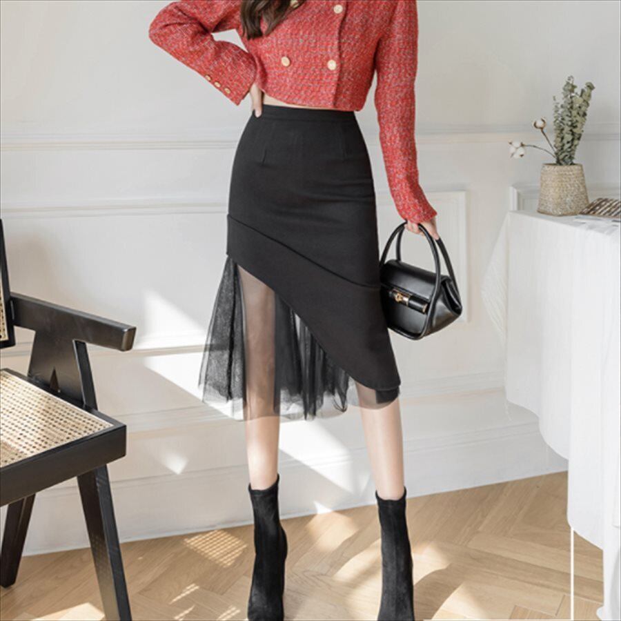 裾に向かって広がるマーメイドスカートです。