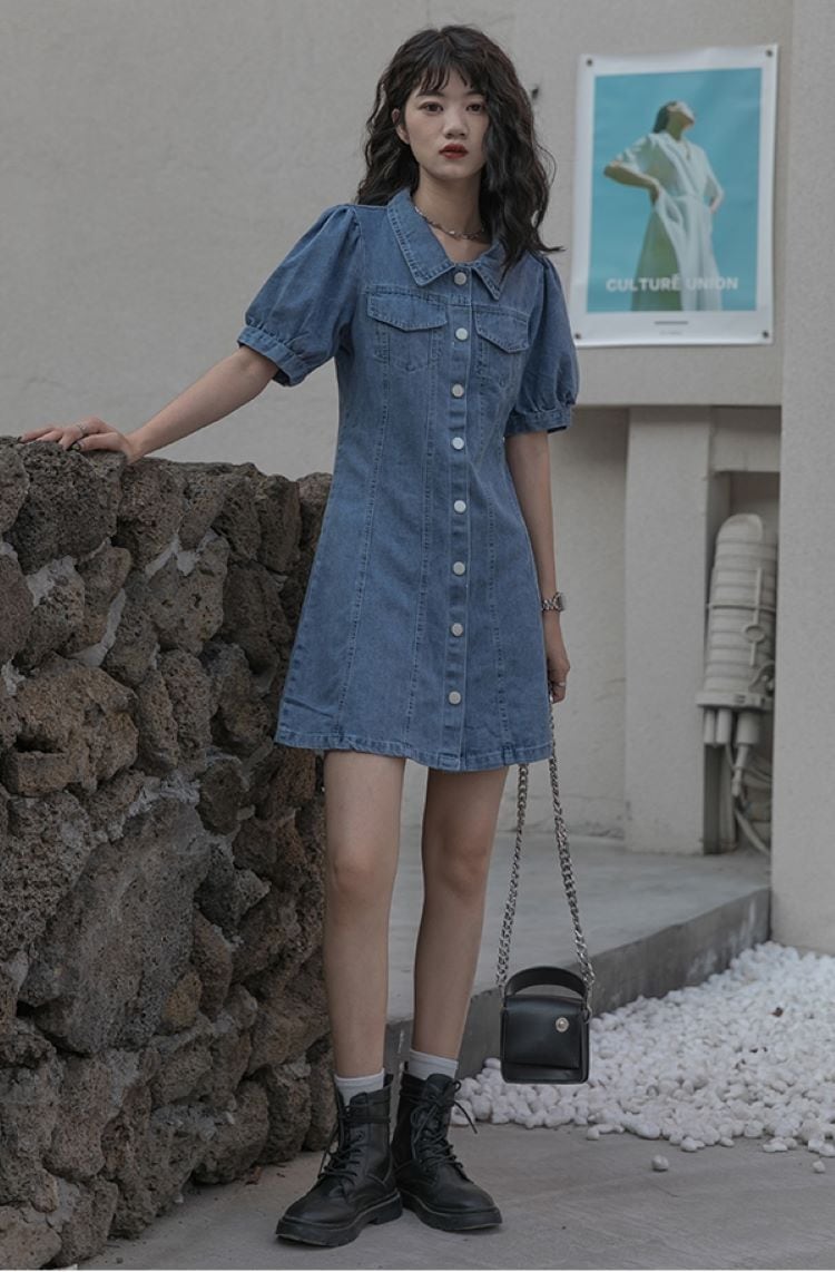 ボリューム袖がかわいい♥デニムワンピースです◎