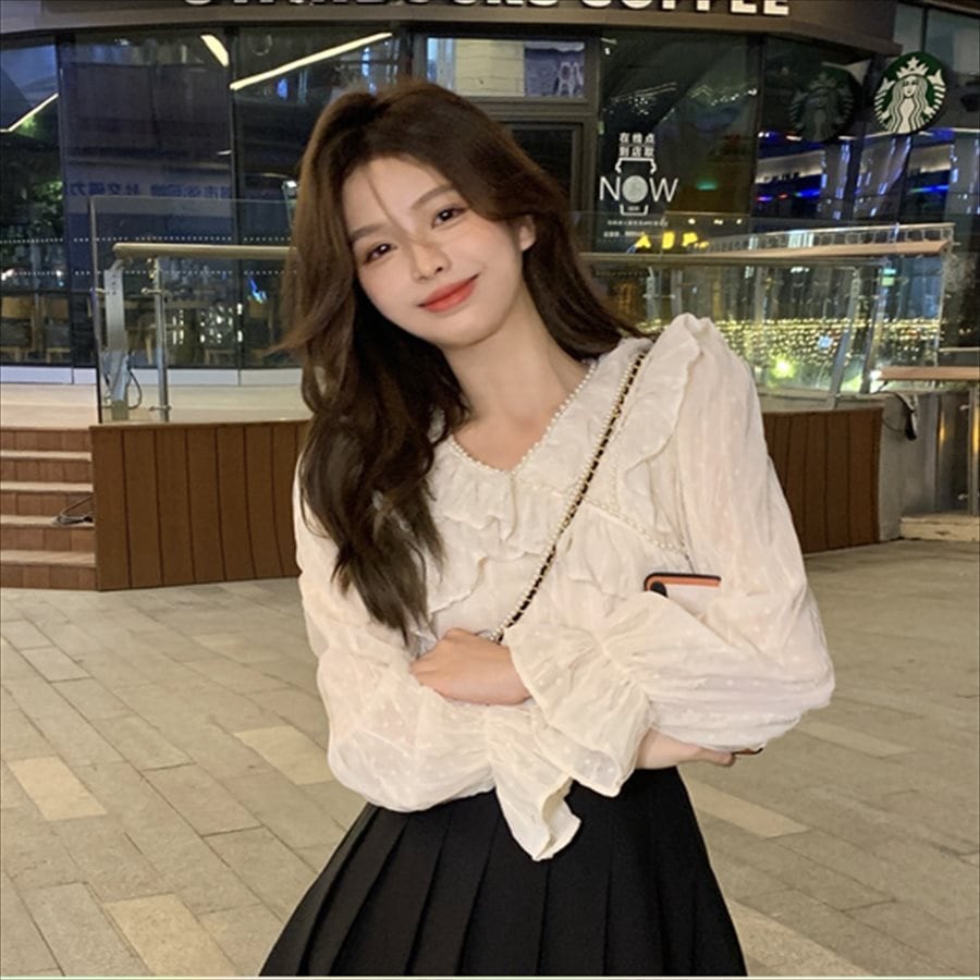 ビジュー装飾が可愛い長袖ブラウス♡