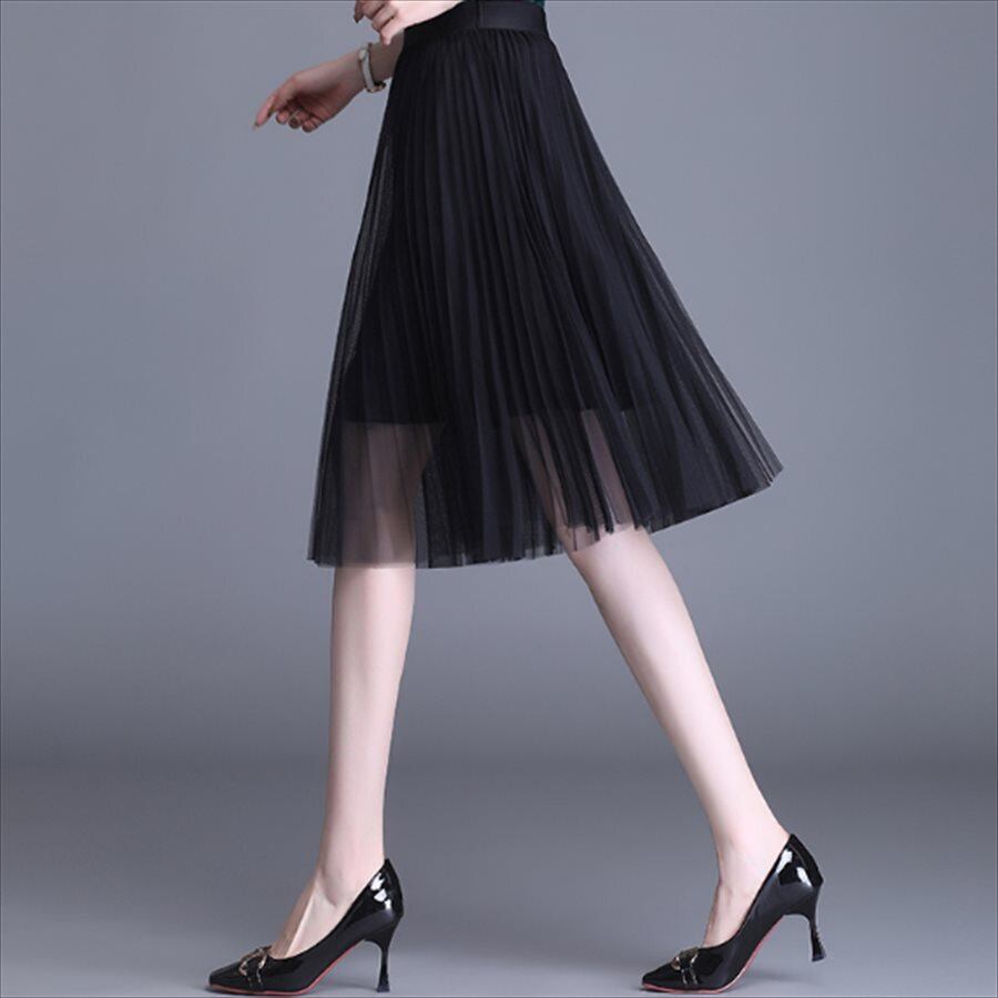 透け感が可愛いひざ丈チュールスカート♡