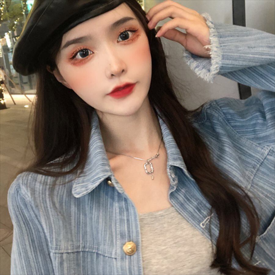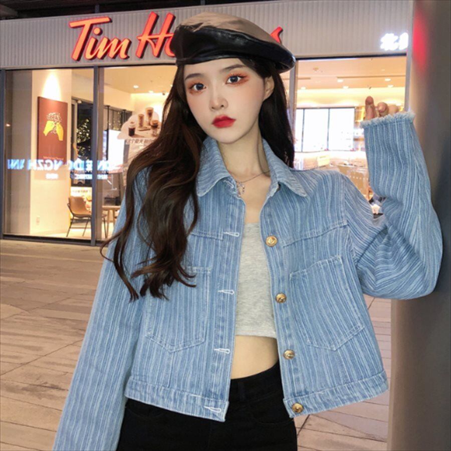 ストライプ柄のデニムジャケット♡