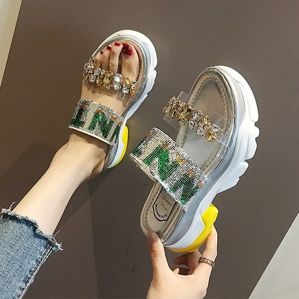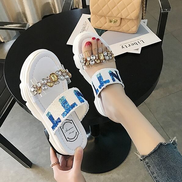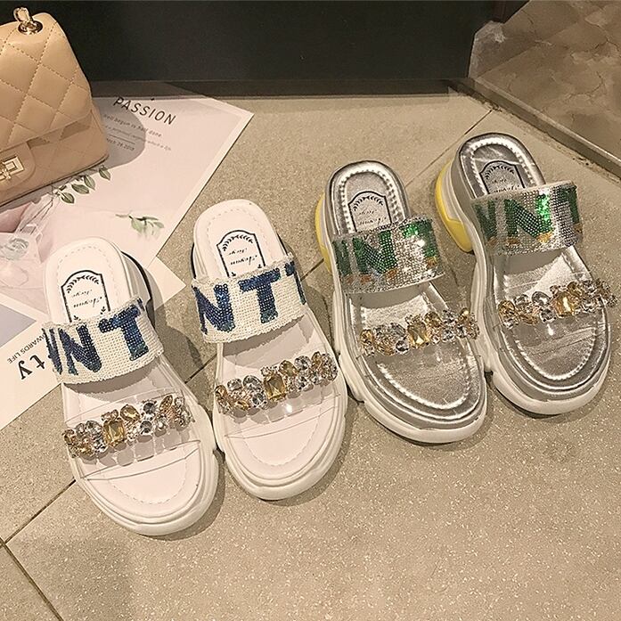 キラキラと輝くラインストーンの装飾がおしゃれで可愛い1足です。