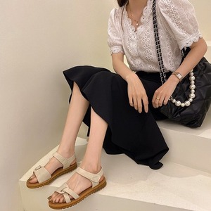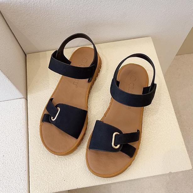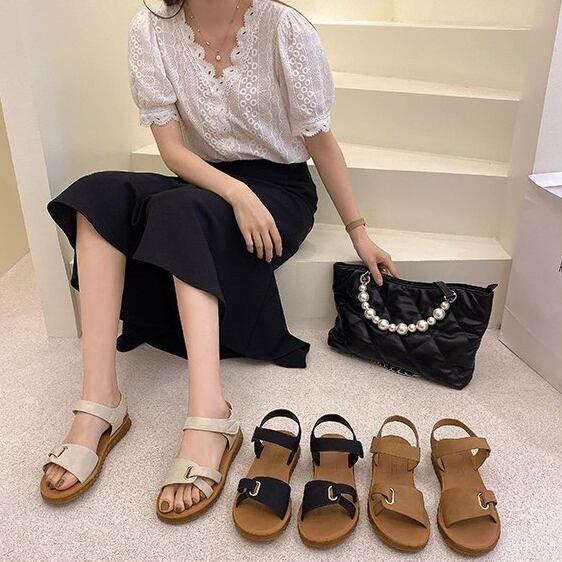 フラットで歩きやすく、長時間履いていても疲れにくいサンダルです。