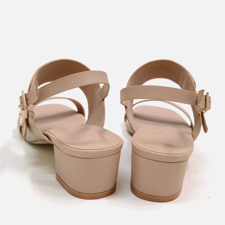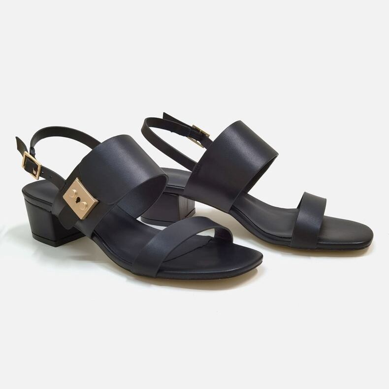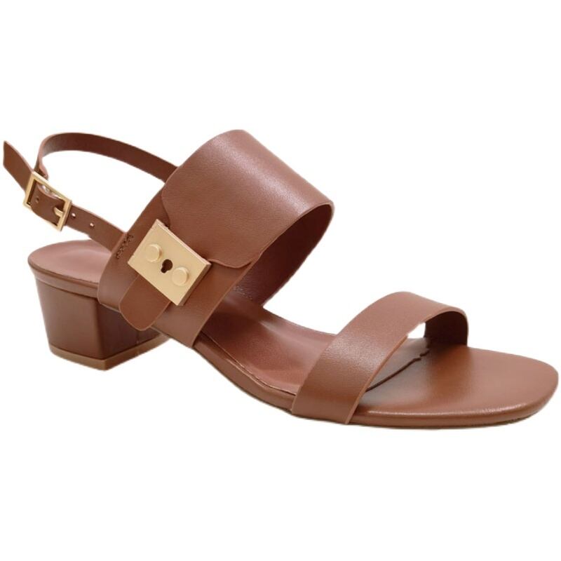 落ち着きのあるカラーにゴールドのバックルがおしゃれなサンダル。