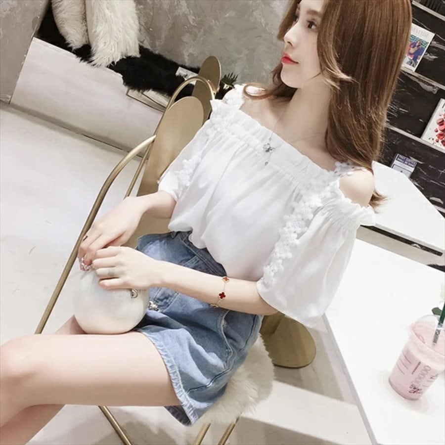 オフショルデザインの半袖ブラウス♡
