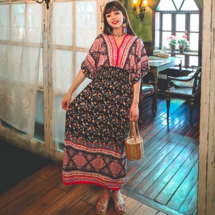 存在感のあるおしゃれなエスニックプリントワンピース。