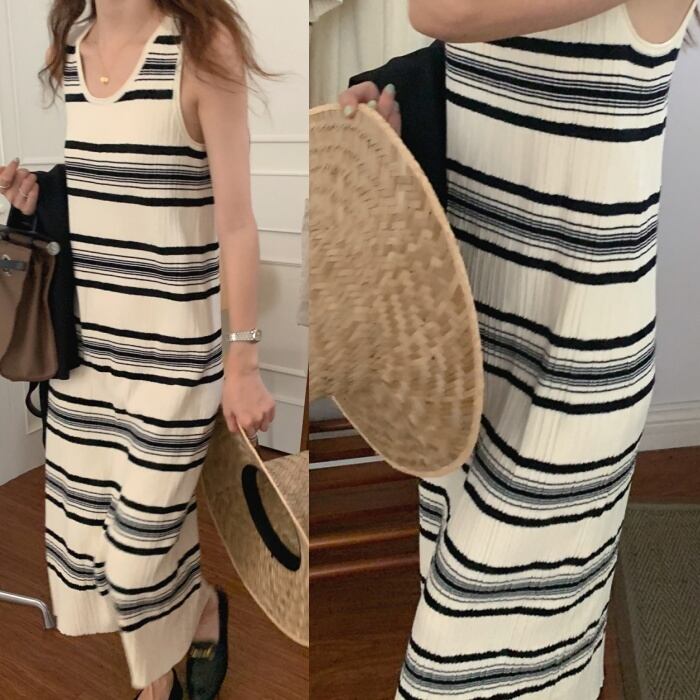 お洒落な配色のボーダー柄が目を惹くワンピース。