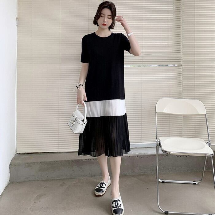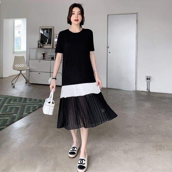 旬の裾プリーツ切り替えがポイントのワンピース。