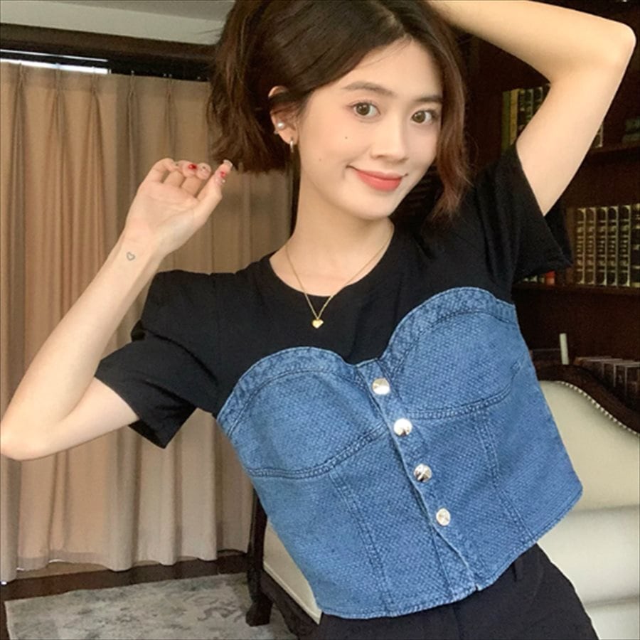 ビスチェとTシャツの重ね着風デザインがお洒落♡