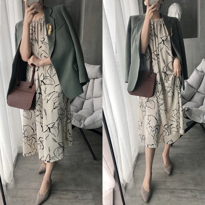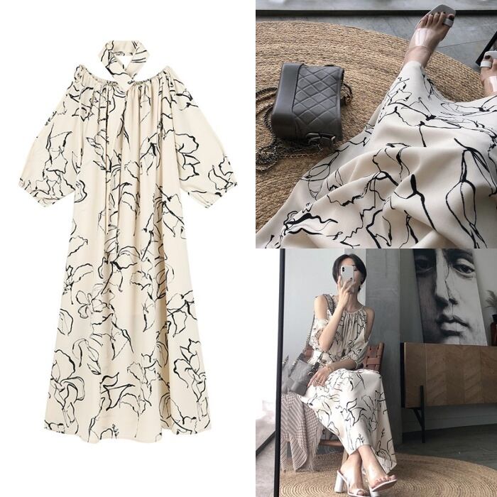 軽やかなシフォン素材で仕立てた、ロングワンピース。