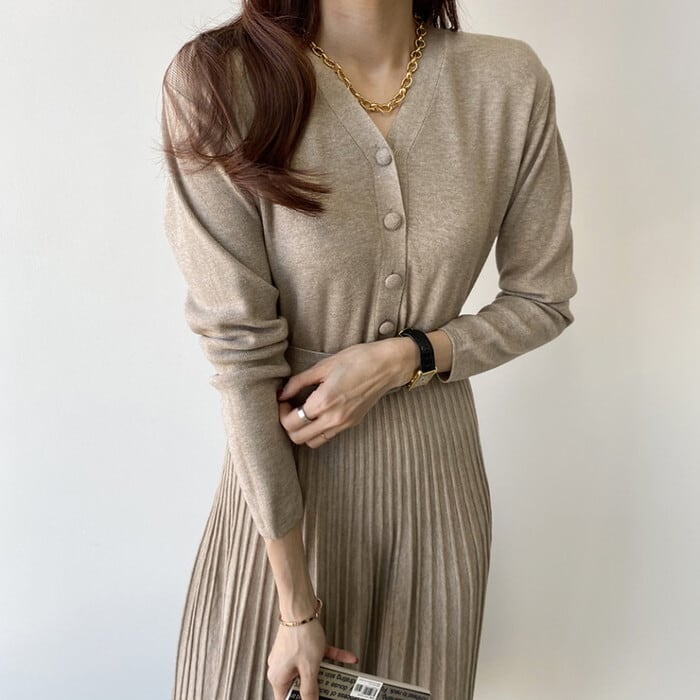 夏をのぞく季節で着まわせる程よい厚みのニット素材。