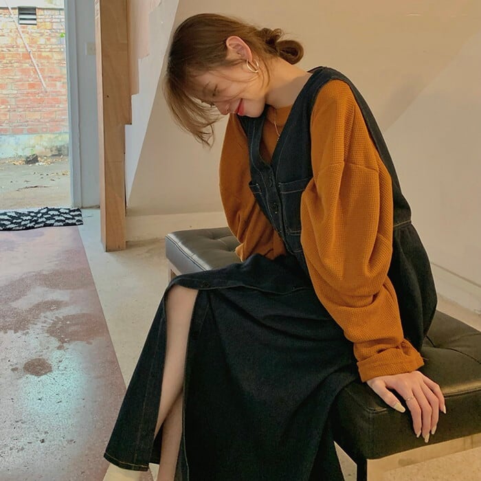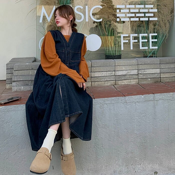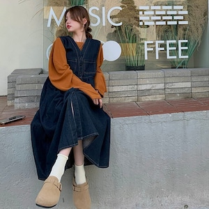 ワンピは前ボタンタイプなので、着脱もラクちん。