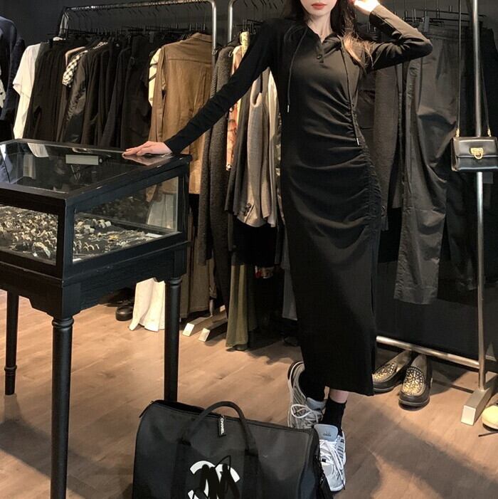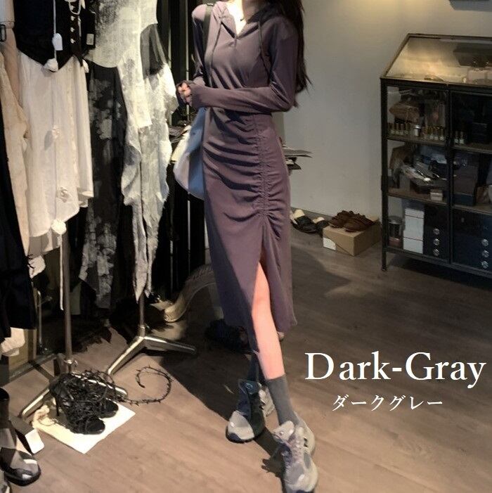 セクシーさとカジュアルさを兼ね備えたパーカーワンピース。