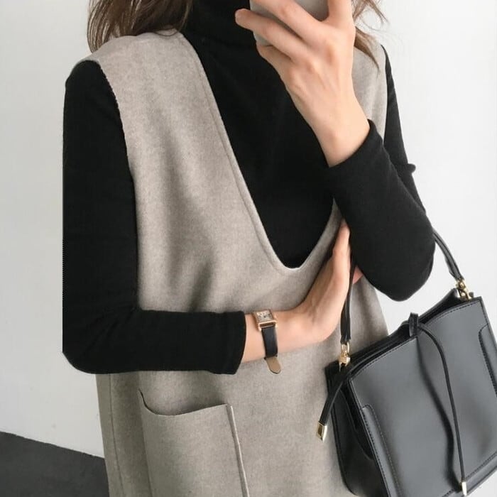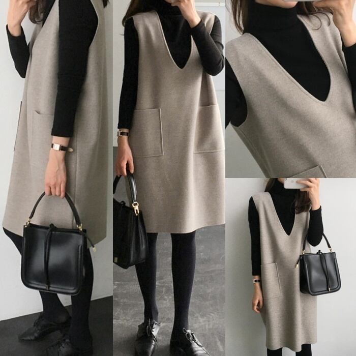旬のレイヤードコーデに欠かせない深Vネックワンピース。