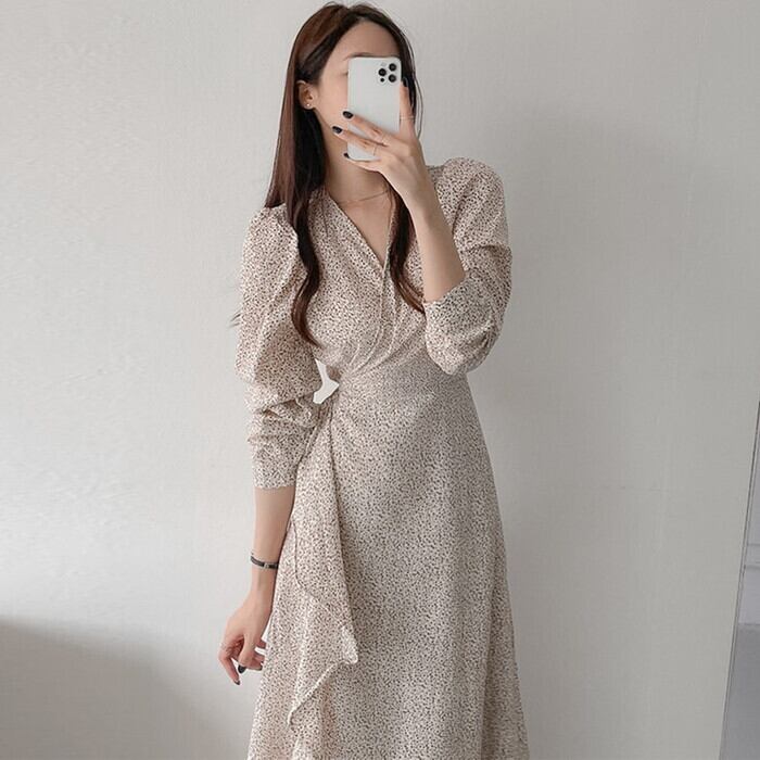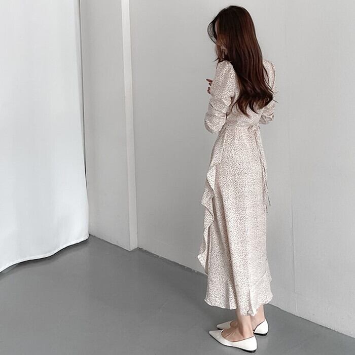 主張しすぎない小花柄で大人っぽく華やぐロングワンピース。
