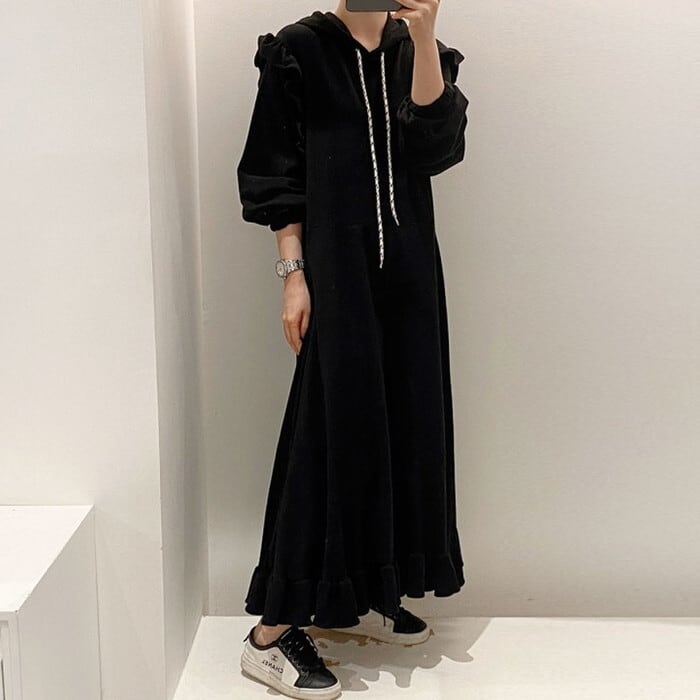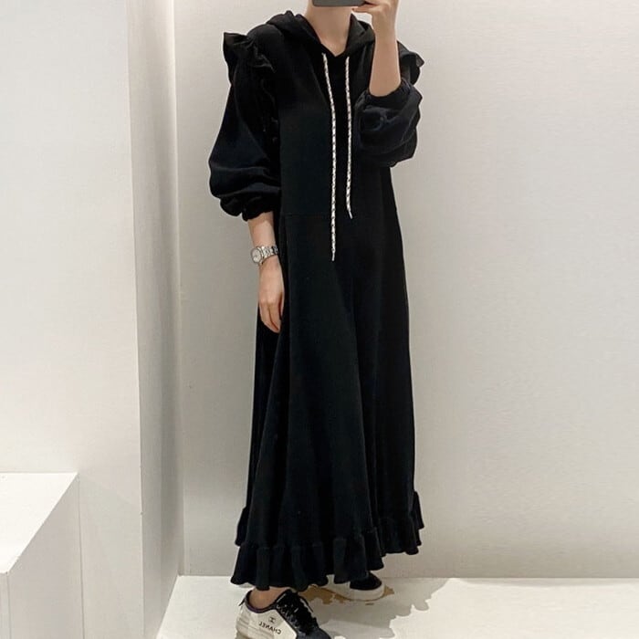 スウェットパーカーロングワンピース。