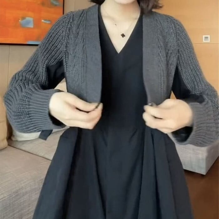 ふんわりとしたフレアシルエットと長めの丈感で、
