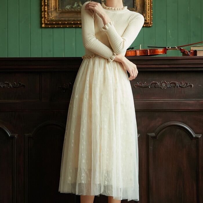 ボリュームたっぷりのチュールスカートで大人可愛い印象に。