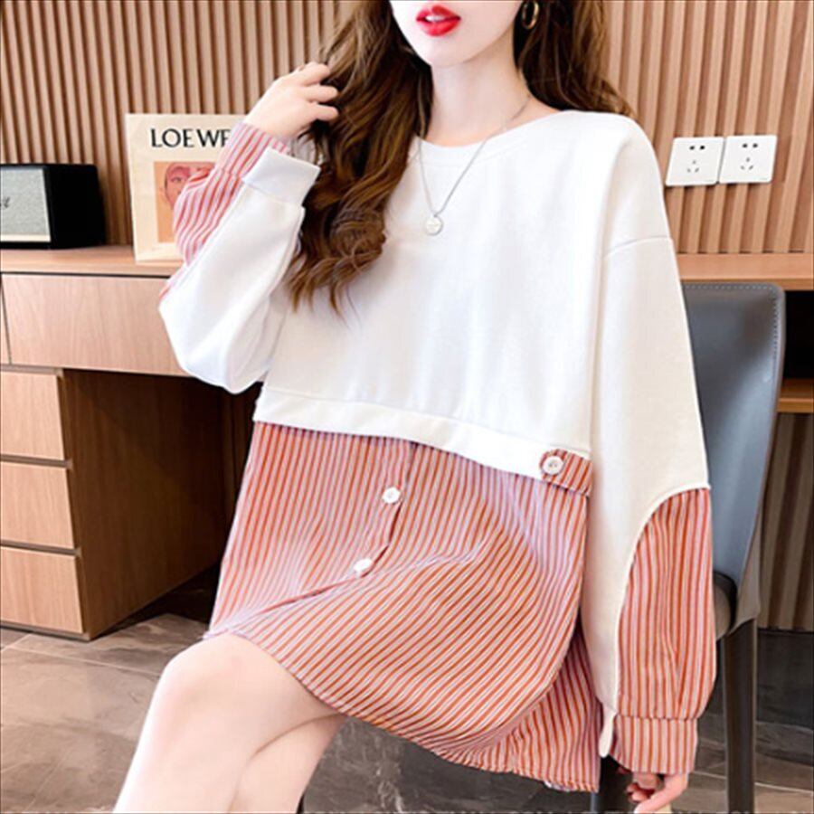 重ね着風デザインの長袖セーター。