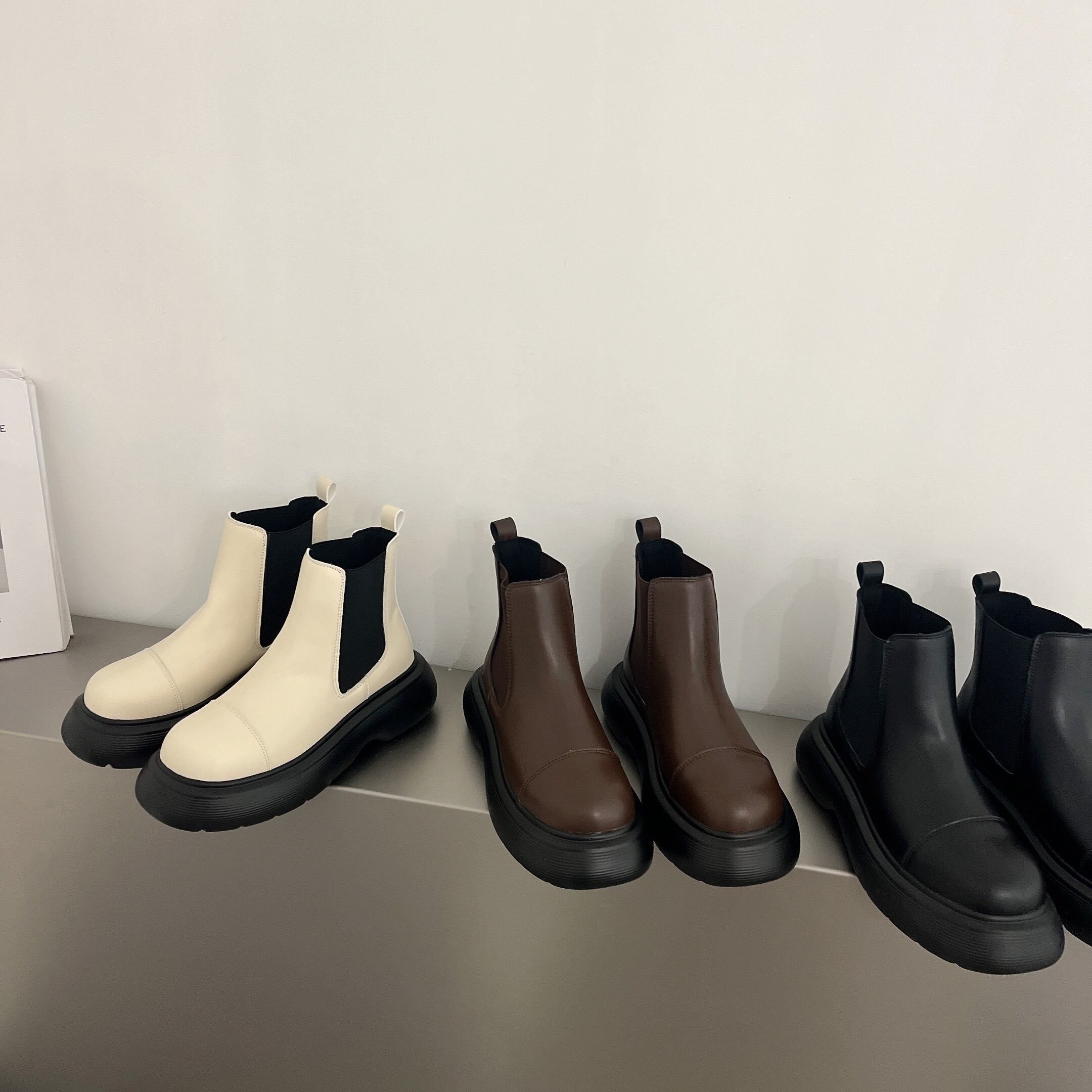 ファスナーやベルトが無くノンストレスで着脱ができるサイドゴアブーツ。