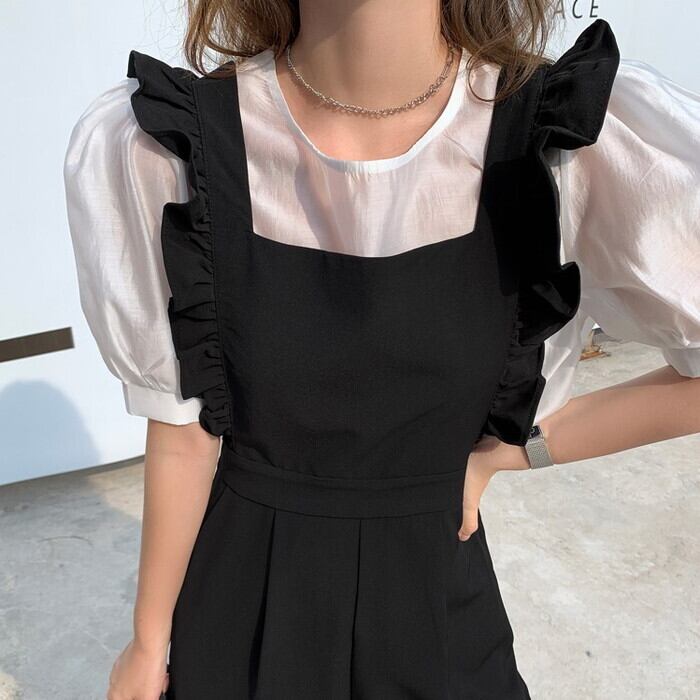 ショルダー部分にフリルをあしらい女性らしいアクセントに。