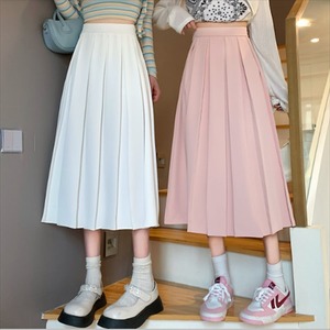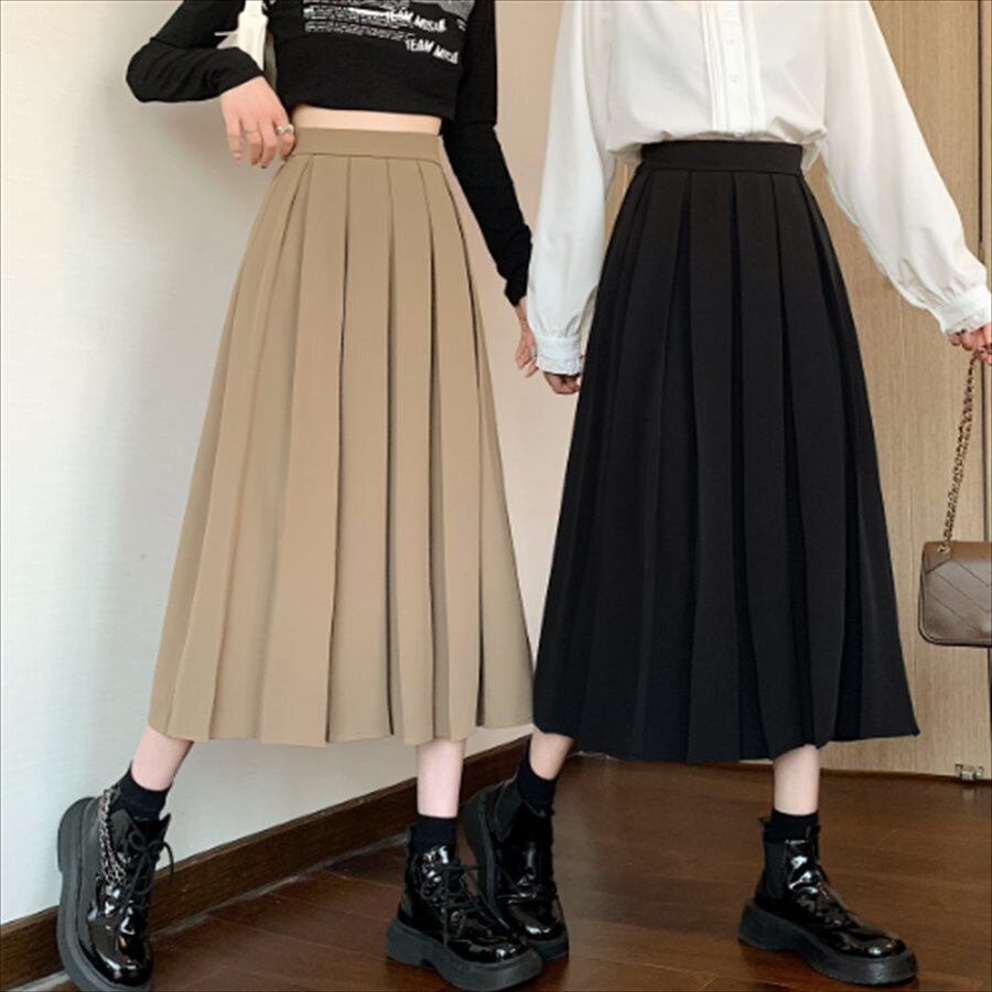 ミモレ丈のプリーツスカート。