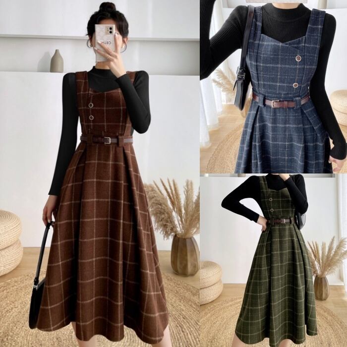 秋冬にぴったりなウールタッチ素材のワンピース。