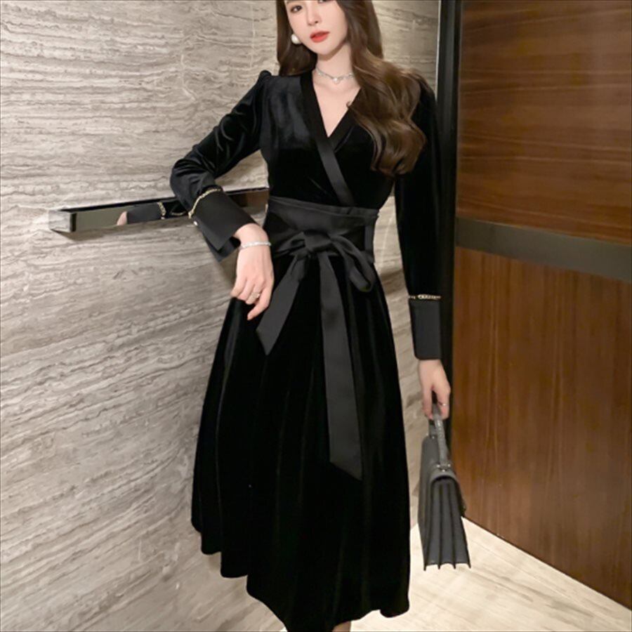 ベロア素材のロングドレス。