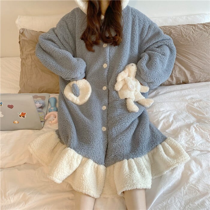 前身頃にはぬいぐるみのうさぎさんを飾り付け♡