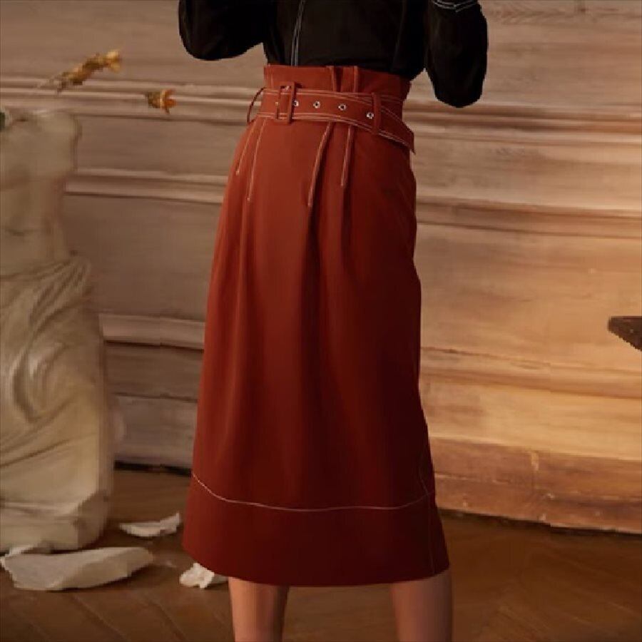 ベルティングデザインのペンシルスカート。