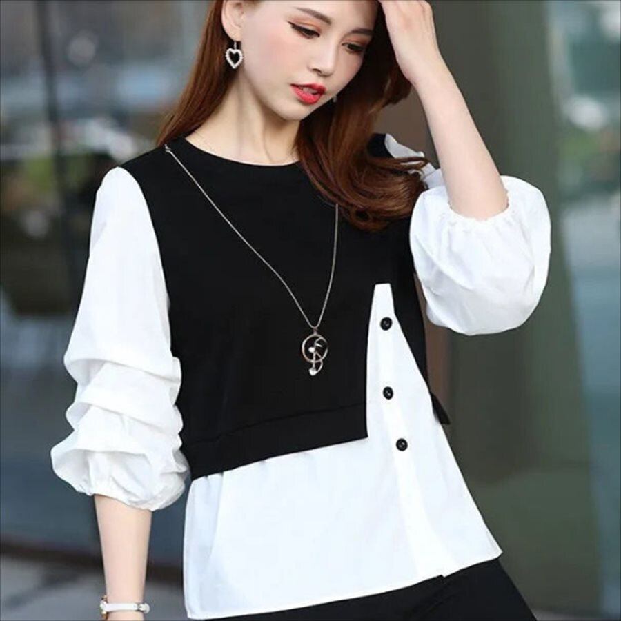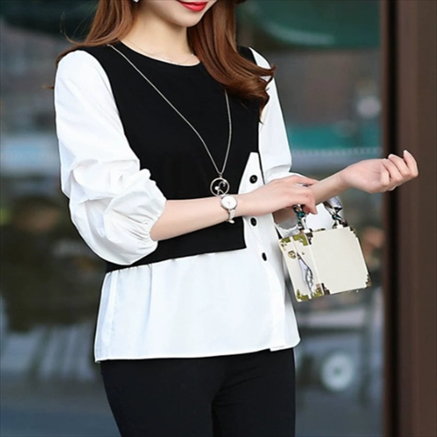 重ね着風デザインが可愛いレイヤードブラウスです。