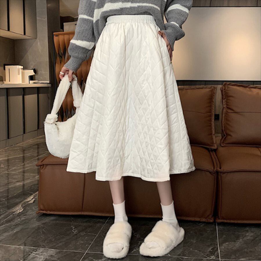 ひざ下丈のキルティングスカートです。