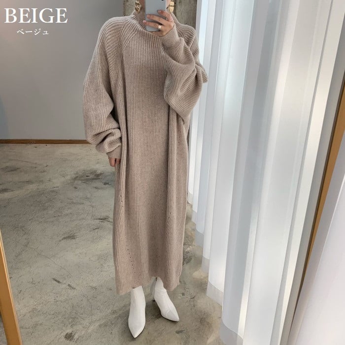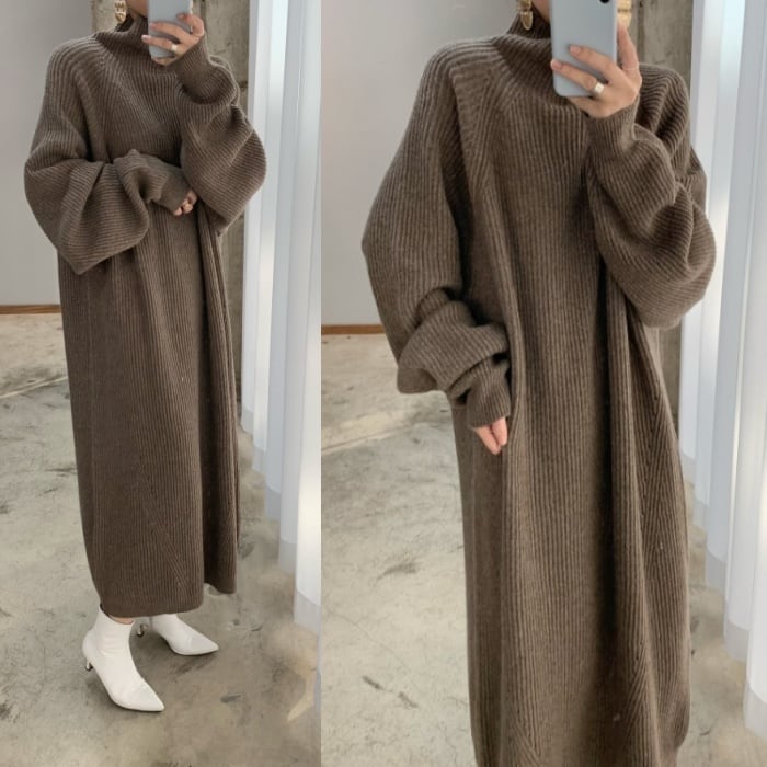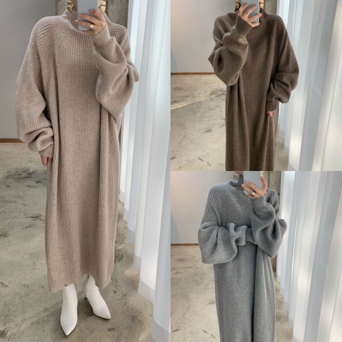 たっぷりのボリューム感がおしゃれなニットワンピース。