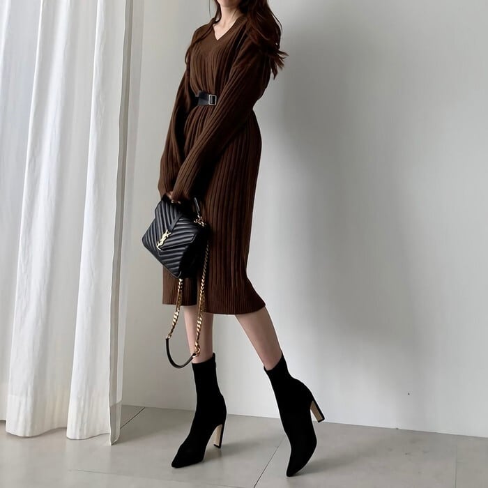 ワイドリブがシンプルデザインに映えるニットワンピース。