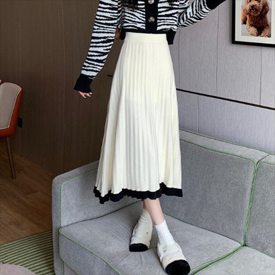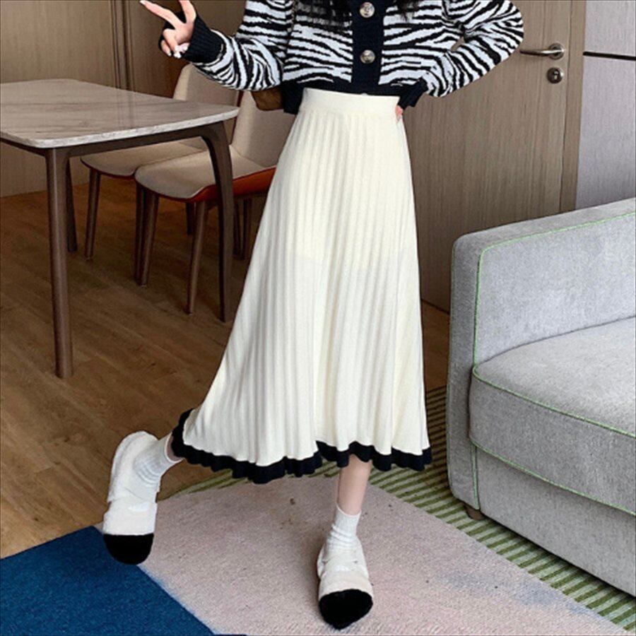 バイカラーデザインのプリーツスカート。