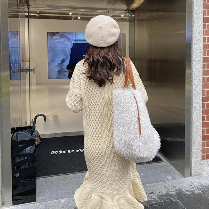 表情豊かなケーブル編みで1枚でもおしゃれなコーデが即完成。