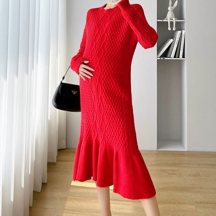マタニティワンピとしてもオススメな大人可愛いニットワンピース。