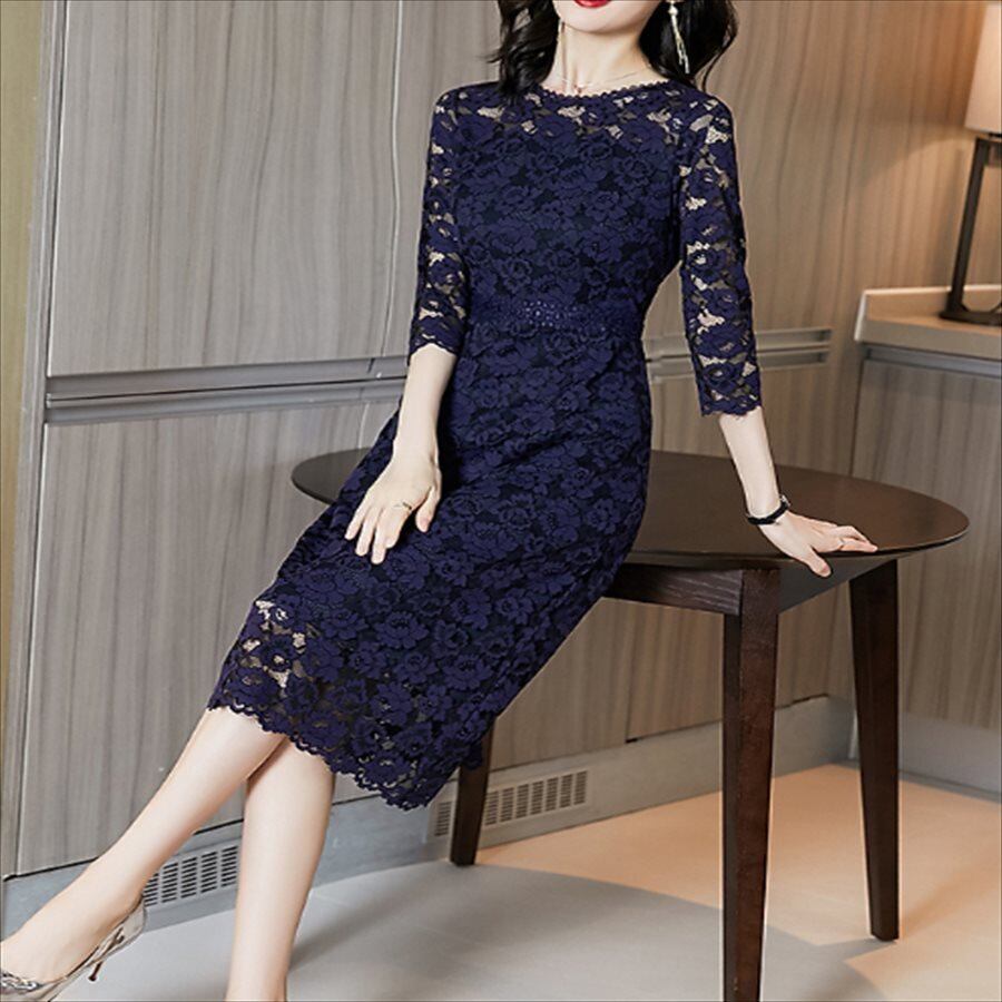 花柄レースのワンピースドレス。