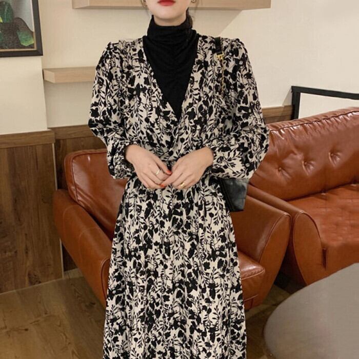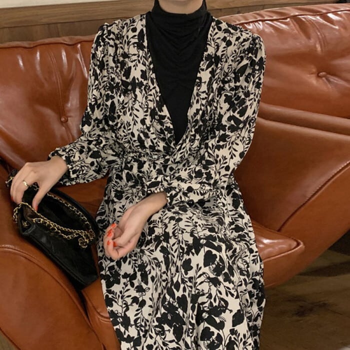 モノトーンのフラワープリントで甘くなりすぎないのが◎