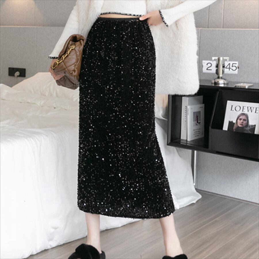 キラキラなスパンコールのロングスカート。