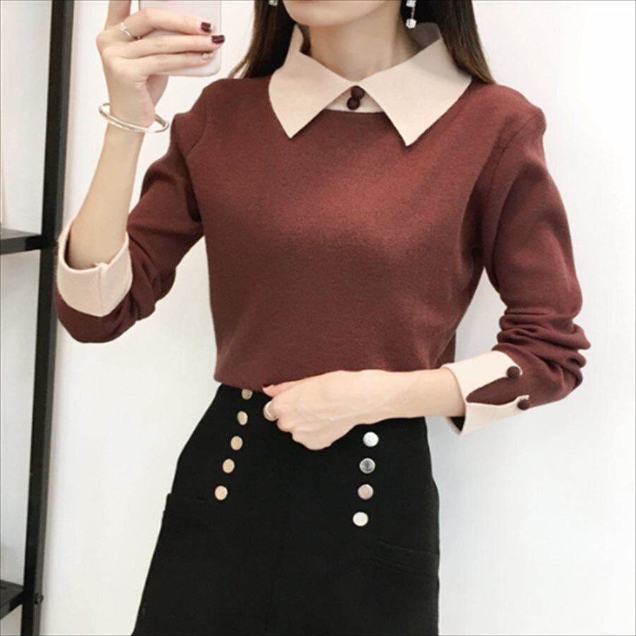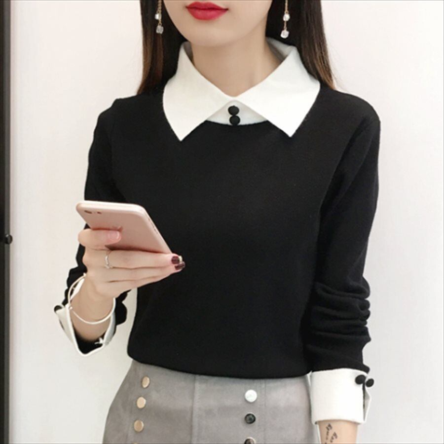 バイカラーデザインのニットセーター。