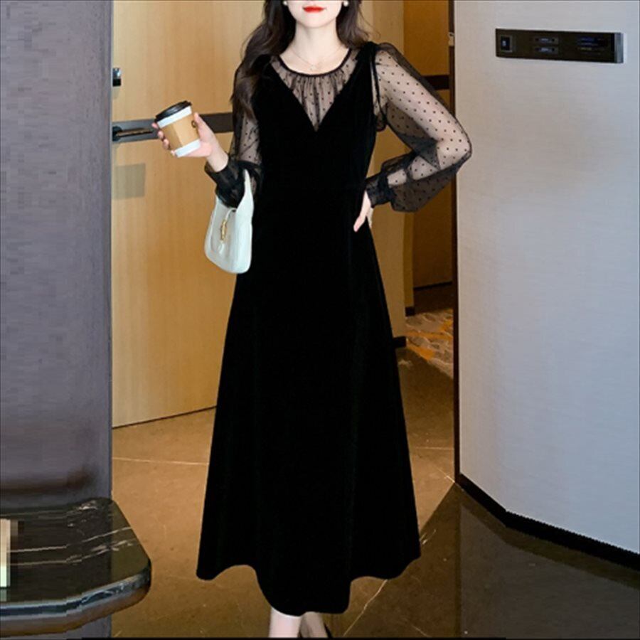 異素材ドッキングのロングドレス&トップスの2点セット。