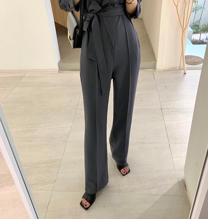 大きめのテーラードカラーが大人顔のジャンプスーツ。