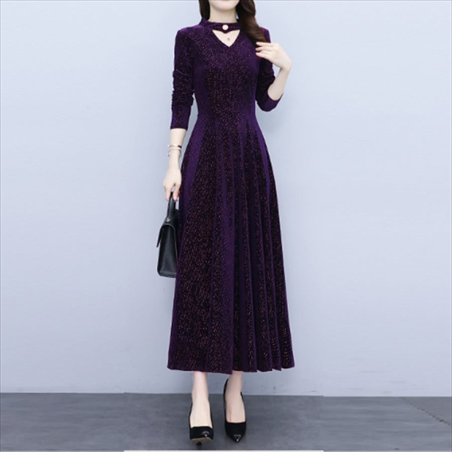 チョーカー風デザインのロングドレス。