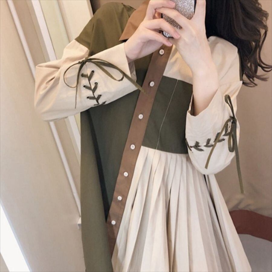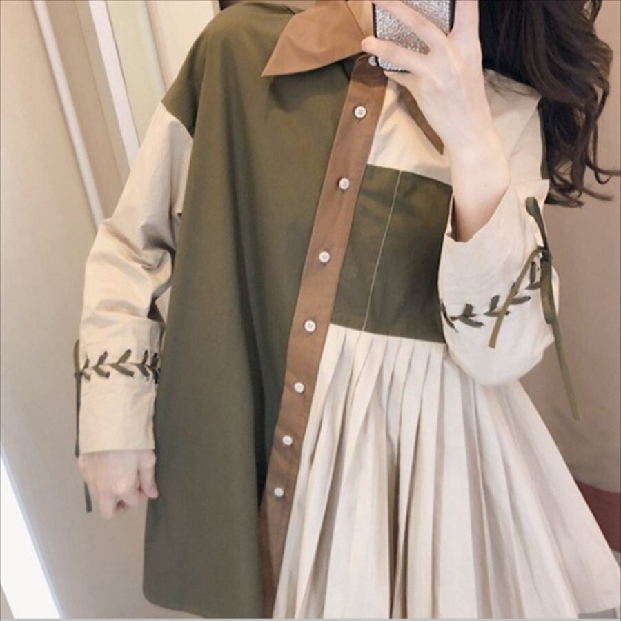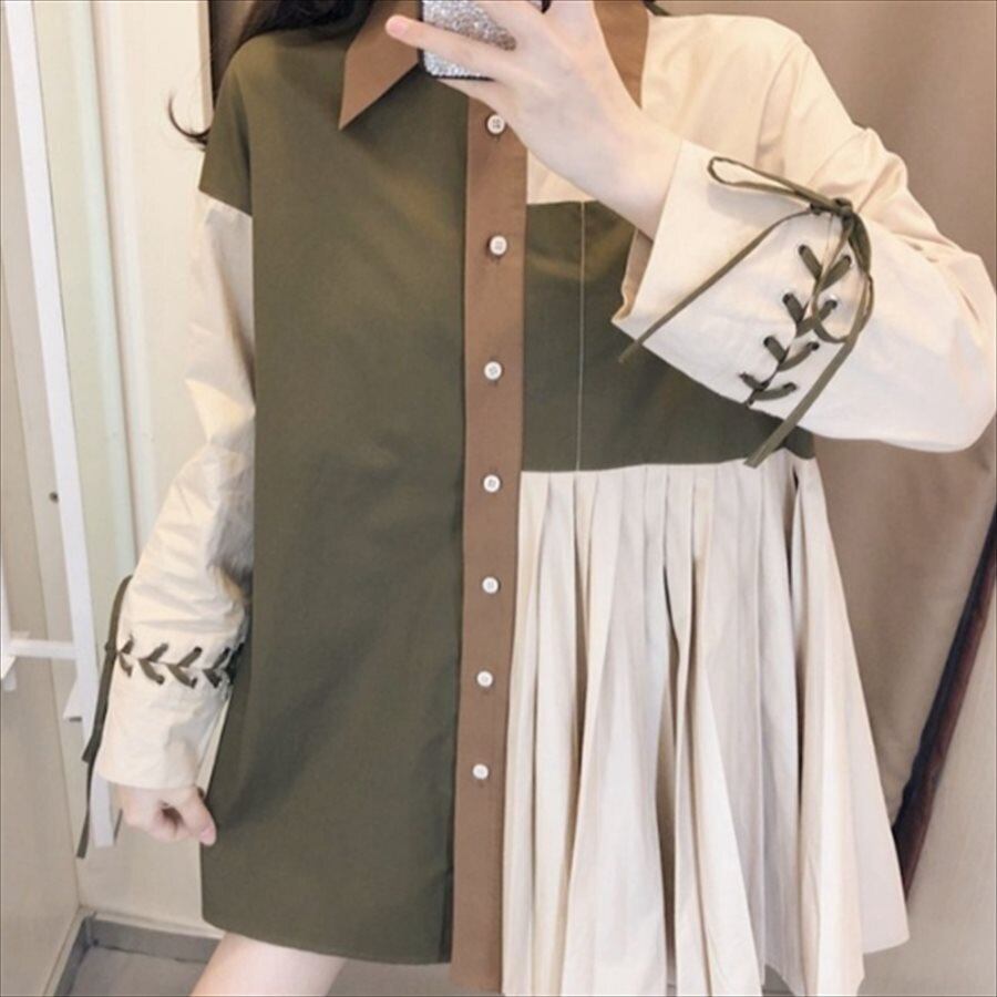 プリーツとの切り替えが可愛い長袖ブラウス。