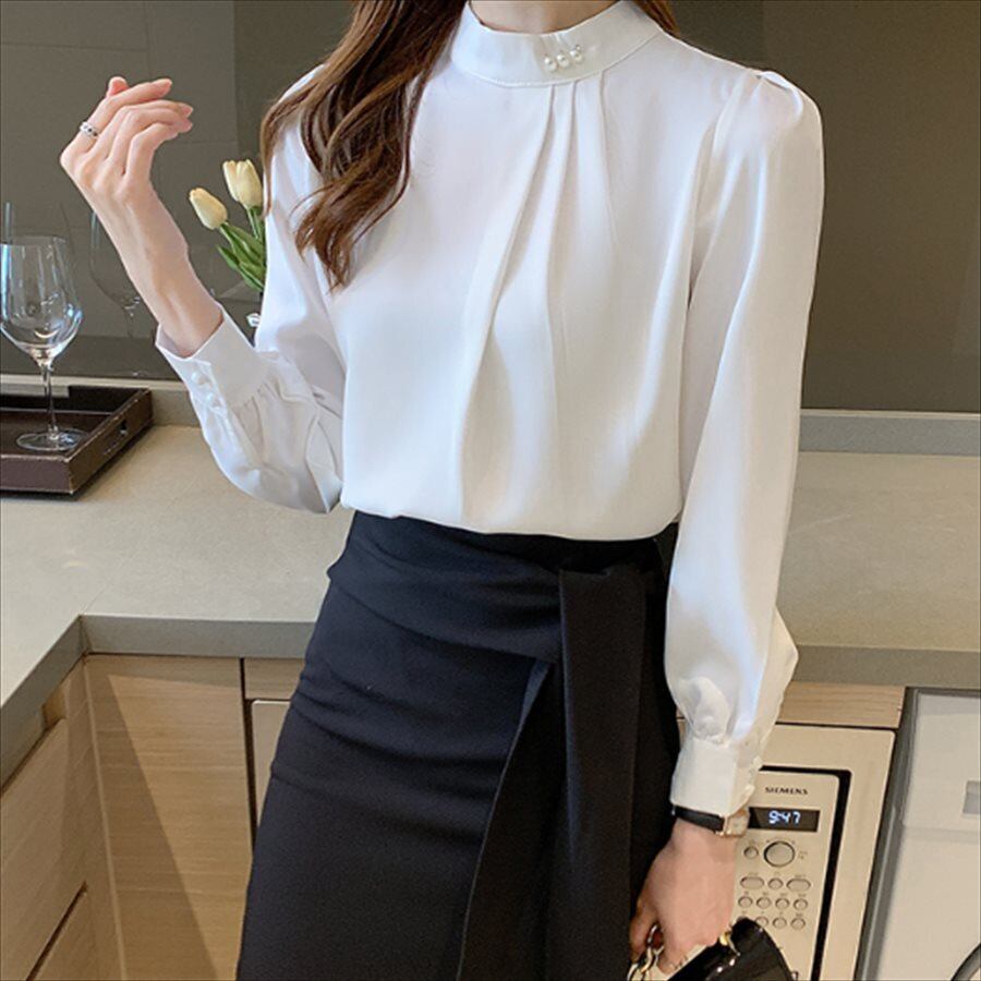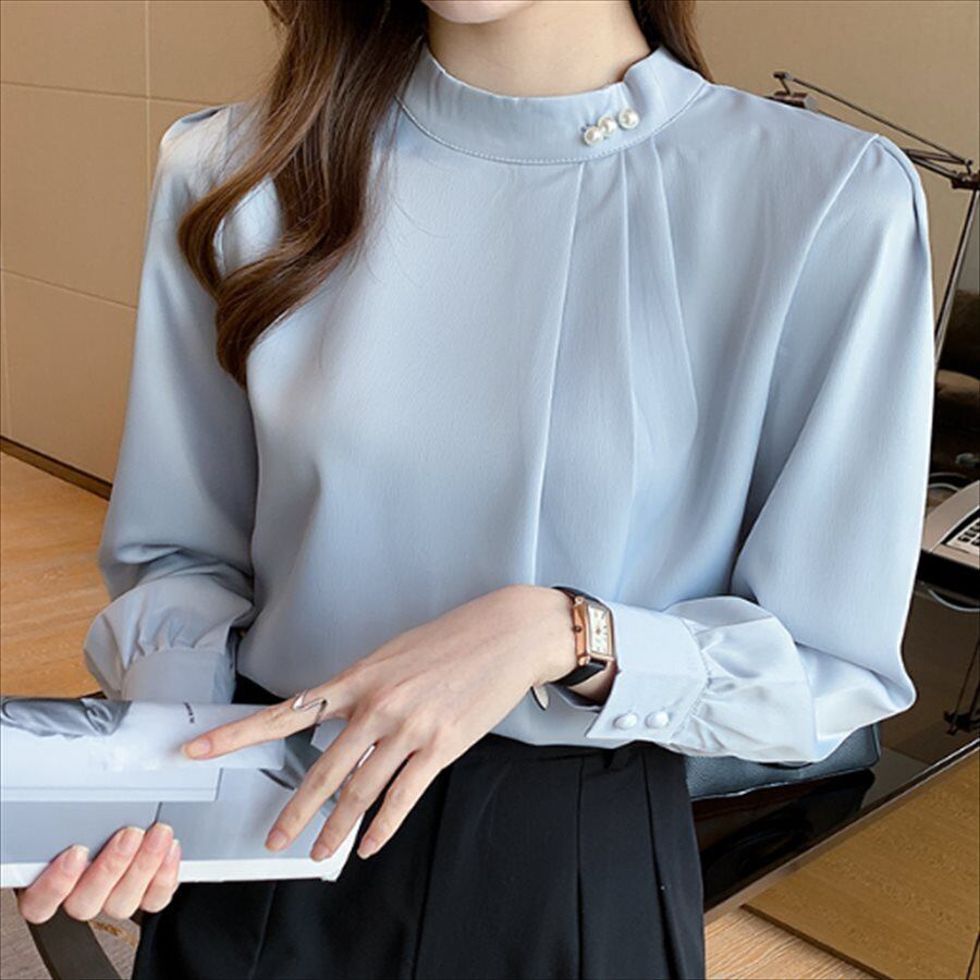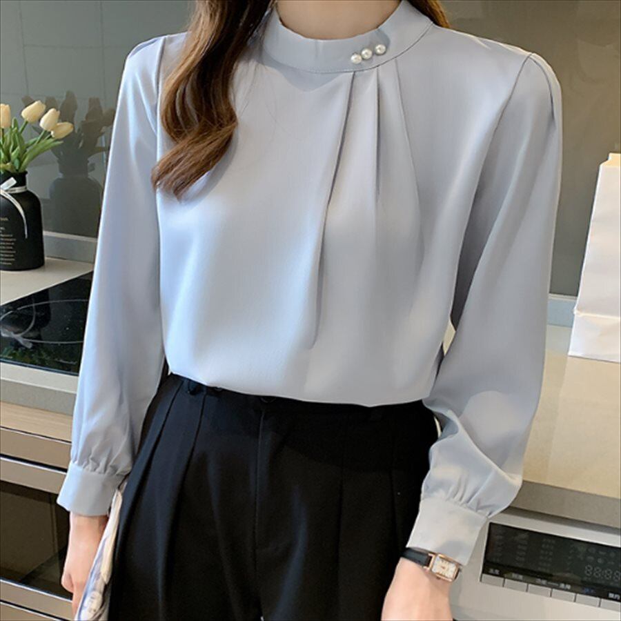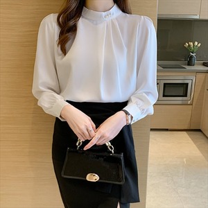ドレープが可愛い長袖ブラウス。
