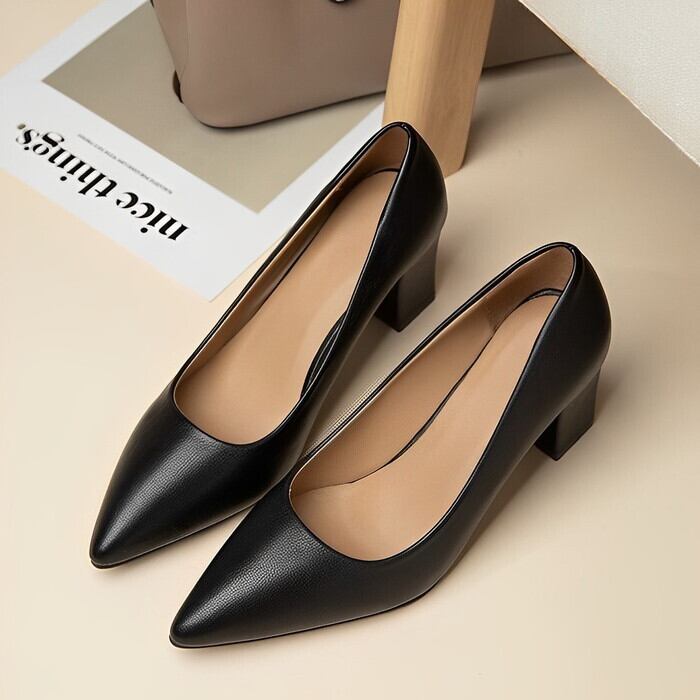 すっきりとしたポインテッドトゥで大人っぽいパンプス。