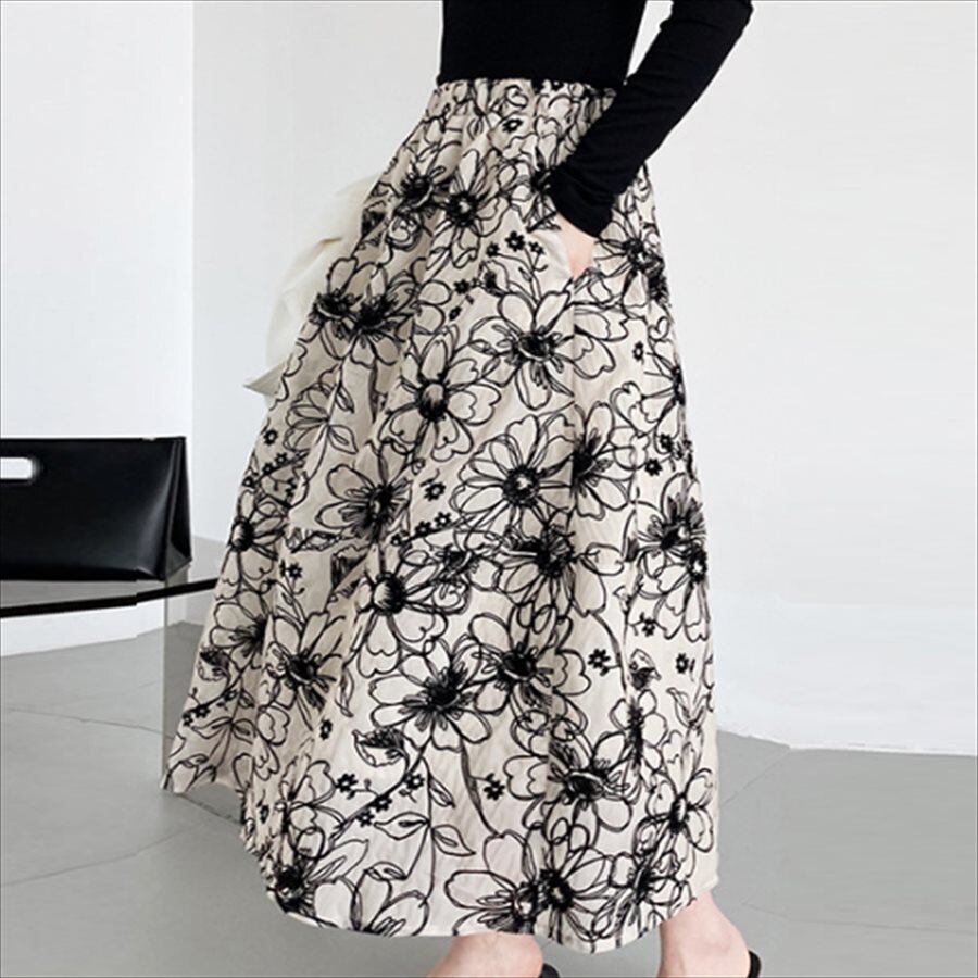 裏地付きの花柄マキシスカート♡